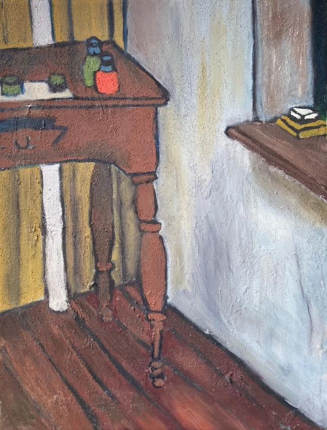 "Sewing Machine I" est une peinture originale sur toile de l'artiste outsider James Swainson (1967-2022) vers le début des années 1990.